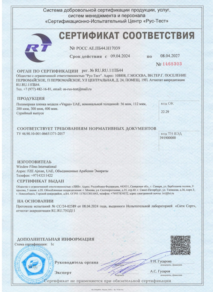 Работаем исключительно с сертифицированными плёнками. Гарантия на выгорание 10 лет.