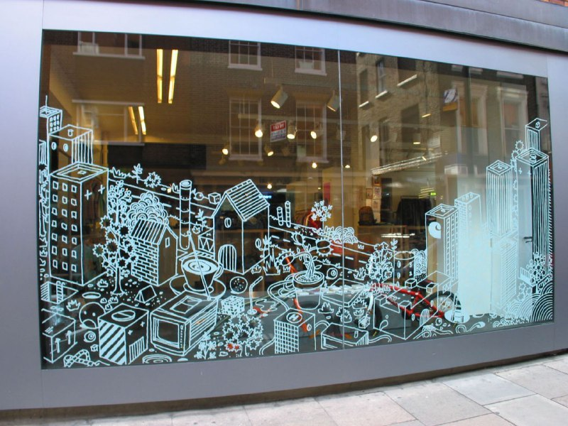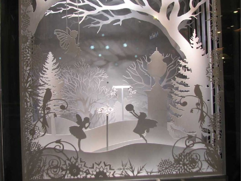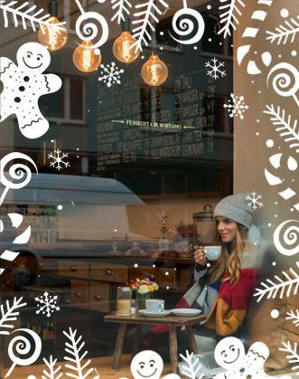Идеи для новогоднего дизайна витрин с использованием наклеек: