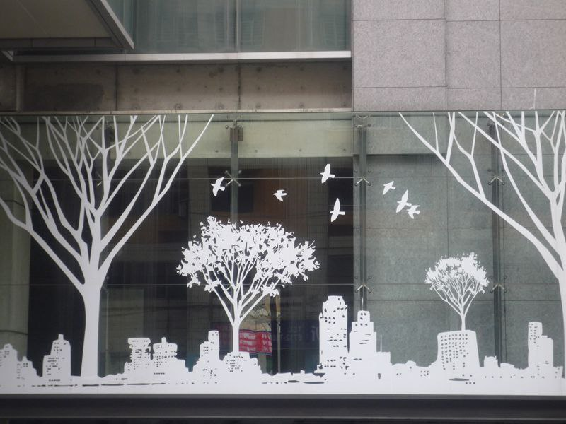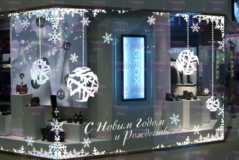Новогоднее оформление витрин с использованием наклеек: